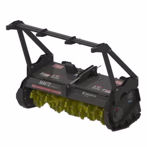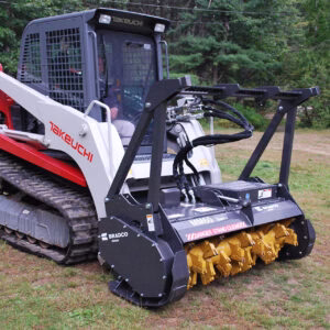 The Bradco SS Mulcher II is a high-performance skid steer attachment designed for efficient land clearing and maintenance. Equipped with fixed hammers and reversible carbide teeth, it ensures durability and easy maintenance. Fixed hammers with reversible and replaceable carbide and claw teeth can be easily interchanged without needing to rebalancing the rotor.
